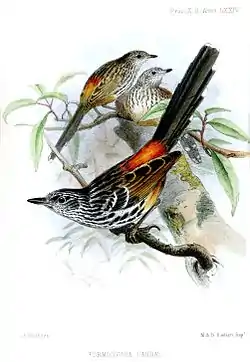 ![]() Drymophila caudata, ilustración de Wolf para Proceedings of the Zoological Society of London, 1854 | ||