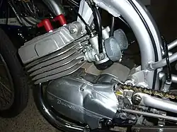 Los pistones eran A.L.B. de forja mecanizados por ICSA, los segmentos eran de fabricación propia y los motores eran derivados del DEM italiano, muy mejorados. Estos motores eran modificados artesanalmente y se les instalaban más velocidades (ocho e incluso más), más aleteado de cilindro y culata, tubos de escape inicialmente rectos para probarlos en el banco de pruebas y que, una vez optimizados, se curvaban para montarlos en la moto.[2][3]