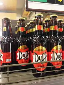 ![]() Botella de cerveza Duff, adquirida en Europa. | ||