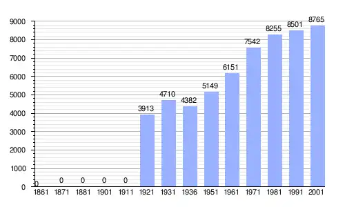 | Gráfica de evolución demográfica de Duino-Aurisina entre 1861 y 2001 |