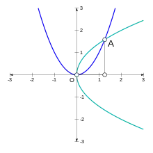 - Menecmo (alrededor de 380-320 a. C.) encontró dos soluciones: una en la que una parábola se cruza con una hipérbola, y una segunda, descrita en detalle en la sección dedicada a las curvas especiales, como la intersección de dos parábolas.[9]