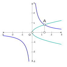 La intersección de la parábola y de la hipérbola genera un punto cuya abscisa es el lado del cubo con el doble de volumen del cubo dado.