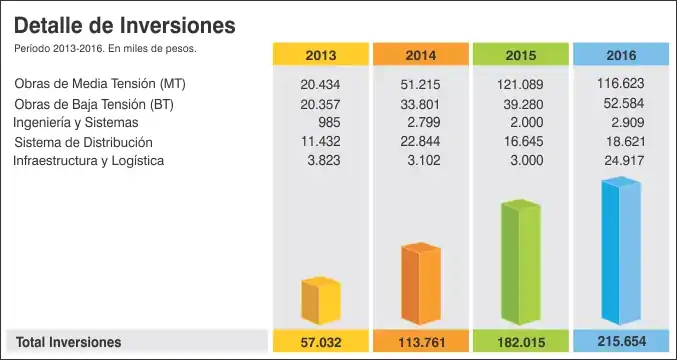 También se amplió la capacidad de potencia en Lobería, Ayacucho, Rauch y General Alvear y se modernizaron las redes de media tensión de Dolores, Chascomús, General Lavalle, Tordillo, Labardén, Pila, General Belgrano, Santa Teresita, San Clemente del Tuyú y Ayacucho.