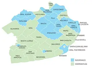 Las localidades en las que EDEA presta su servicio en forma directa y a través de cooperativas eléctricas comprendidas en su área de concesión son: General Alvear, Tapalqué, Olavarría, Azul, Benito Juárez, Tandil, Adolfo Gonzales Chaves, Tres Arroyos, San Cayetano, Necochea, Lobería, Balcarce, Miramar, General Pueyrredón, Santa Clara del Mar, Mar Chiquita, Ayacucho, Rauch, Las Flores, General Belgrano, Pila, General Guido, Maipú, General Madariaga, Villa Gesell, Pinamar, Partido de la Costa, General Lavalle, Tordillo, Dolores, Castelli, Chascomús y General Paz.