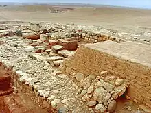 La primera destrucción se produjo c.2300 AC; se quemó el palacio "G", cociendo las tablillas de arcilla de los archivos reales y conservándolas.[2] Se han postulado muchas teorías sobre la causa y el autor:[3]