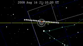 El 16 de agosto-17 de agosto de 2008 tuvo lugar un eclipse lunar parcial, siendo el segundo eclipse lunar del año tras el eclipse total del 20-21 de febrero de 2008. El siguiente eclipse lunar fue un eclipse penumbral que se producirá el 9 de febrero de 2009, mientras que el próximo eclipse lunar total se producirá el 21 de diciembre de 2010 y el próximo parcial de luna será el 31 de diciembre de 2009 en Víspera de Año Nuevo y luna azul (segunda luna llena en un mismo mes).[1]
