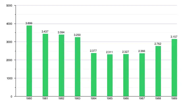 | Gráfica del crecimiento del producto interno bruto de El Salvador 1980-1989 |