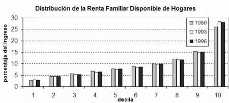Los efectos adversos de la crisis han generado un importante cambio de tendencia en lo que a distribución de la renta se refiere. España, en el periodo entre 2008 y 2011, no había seguido la tendencia al aumento de las desigualdades observada en muchos países desarrollados, pero esta excepción ha quedado truncada por la intensidad de la crisis que ha convertido a España en uno de los países donde las desigualdades han crecido más en los años 2008-2013 (OCDE 2013, 2014).[24] En 2017, el 0.4 % de la población concentra casi la mitad del PIB de España.[30]