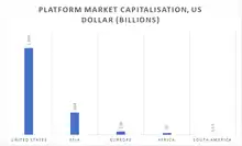 Europa alberga una gran cantidad de empresas de plataformas, pero la mayoría son bastante pequeñas. En términos de compañías de plataformas que fueron valoradas en más de U$S 1 mil millones, se encontró que Europa tenía solo 27 en la encuesta global de 2016. Muy por delante de África y América del Sur, pero muy por detrás de Asia y América del Norte.[33]