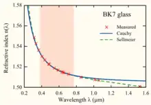 , son coeficientes que se pueden determinar para un material ajustando la ecuación a los índices de refracción medidos en longitudes de onda conocidas. Los coeficientes generalmente se citan para λ como la longitud de onda en el vacío en micrómetros.