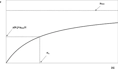 - Ks es la "constante de media velocidad": el valor de S cuando μ/μmax = 0.5