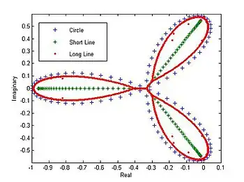 Los valores propios del sistema circular trazados en el plano complejo forman una forma de trébol. Los valores propios de una línea corta forman una Y lateral, pero los de una línea larga comienzan a parecerse a la forma de trébol del círculo. Esto podría deberse al hecho de que una línea larga es indistinguible de un círculo a aquellas especies alejadas de los extremos.