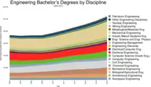 El primer título profesional en ingeniería es una licenciatura con algunas excepciones. Dicho esto, el interés en la ingeniería ha crecido desde 1999; el número de títulos de licenciatura emitidos ha aumentado en un 20 %.
