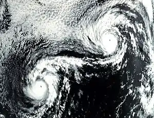 El efecto de Fujiwhara o interacción de Fujiwhara es un tipo de interacción entre dos vórtices ciclónicos, que produce que "orbiten" uno en torno al otro.