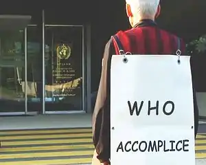 - Un informe del Comité Europeo sobre el Riesgo de la Radiación (un cuerpo auspiciado por el Partido Verde Europeo) dice que la Organización Mundial de la Salud, junto con la mayor parte de otros cuerpos de la salud internacionales y nacionales, ha marginalizado o ignorado, quizás intencionalmente, las terribles consecuencias de la lluvia radiactiva de Chernóbil para proteger los intereses personales de la industria nuclear.[57]