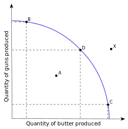 Eficiencia productiva (también conocida como eficiencia técnica) se produce cuando la economía está utilizando todos sus recursos de manera eficiente, produciendo el máximo de producción con el mínimo de recursos. El concepto se ilustra en la Frontera de posibilidades de producción (FPP) en la cual todos los puntos de la curva son los puntos de máxima eficiencia productiva (es decir, no se puede lograr más productos a partir de las recursos presentes).[1]
