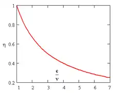 La fórmula de la eficiencia propulsiva para los motores de respiración aérea es la siguiente[2]. [3]. Puede derivarse estableciendo en la ecuación general, y suponiendo que . Esto anula el flujo de masa y conduce a: