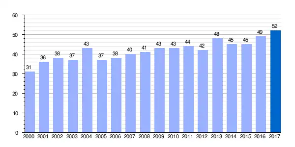 | Gráfica de evolución demográfica de Eguílaz[3] entre 2000 y 2017 |
