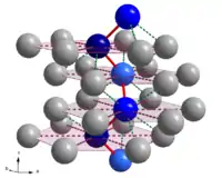 Es aplicable a grupos espaciales una rotación de 360°/n sobre un eje, combinada con una traslación en el eje por un múltiplo de la distancia de la simetría de la traslación, dividida por n. Este múltiplo está indicado por un subíndice. Por lo tanto, 63 es una rotación de 60° combinada con una traslación de 1/2 del vector de la retícula, lo que implica que también posee simetría rotacional por triplicado sobre este eje. Las posibilidades son 21, 31, 41, 42, 61, 62 y 63, y los enantiomorfos 32, 43, 64 y 65.[8]