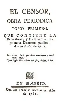 El Censor fue un periódico semanal editado en Madrid entre los años 1781 y 1787. Es considerado uno de los periódicos más importantes del siglo XVIII español.[1] Funcionó como portavoz de las ideas de un grupo de ilustrados españoles.