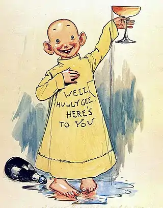 La viñeta del 16 de febrero de 1896 ha pasado a la historia del medio, porque mostraba un globo de diálogo mediante el cual un loro exclama: "Sic em towser!", aunque en la serie nunca dejara de coexistir este recurso con otras formas de representar los diálogos, como ya se dijo más arriba.