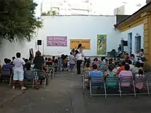 Los vecinos del barrio se disfrazan de los personajes de un belén: pastores, reyes magos, etc. y representan el nacimiento de Jesús.