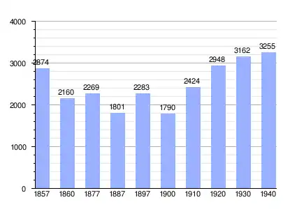 | Gráfica de evolución demográfica de El Pardo entre 1857 y 1940 |