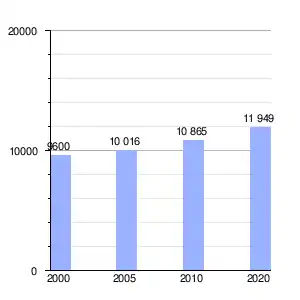 Cuenta con 11 949 habitantes lo que representa un incremento promedio de 0.98% anual en el período 2010-2020 sobre la base de los 10 865 habitantes registrados en el censo anterior. Ocupa una superficie de 4.458 km², lo que determina al año 2020 una densidad de 2680 hab/km².[6]