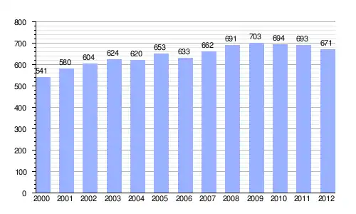 | Gráfica de evolución demográfica de El Real entre 2000 y 2012 |
