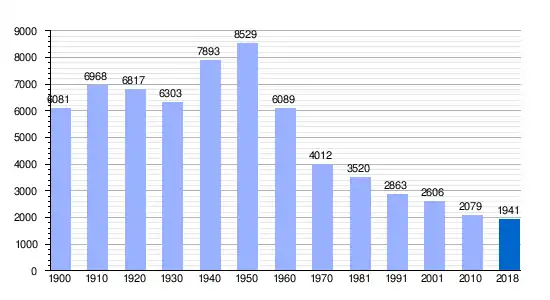 Población de derecho (1900-1991) o población residente (2001, 2010) según los censos de población del INE. Población según el padrón municipal de 2018 del INE. |