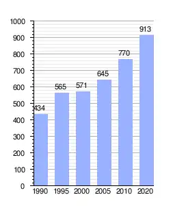 | Gráfica de evolución demográfica de El Tule entre 1990 y 2020 |