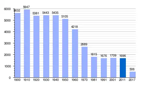 Población de hecho (1900-1991) o población residente (2001) según los censos de población del INE. Población según el padrón municipal de 2017 del INE. |