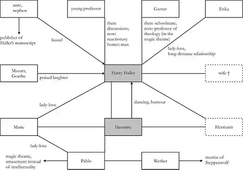 - Harry Haller, el protagonista, un hombre de mediana edad.[3]