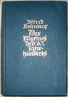 El mito del siglo XX (Der Mythus des zwanzigsten Jahrhunderts) es un libro de 1930 de Alfred Rosenberg, uno de los principales ideólogos del Partido Nazi y editor del periódico nazi Völkischer Beobachter . El "mito" titular (en el sentido especial Soreliano) es "el mito de la sangre, que bajo el signo de la esvástica desencadena el mundo. Es el despertar de la raza-alma, que después de un largo sueño termina victoriosamente con el caos racial ".[1]
