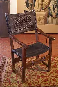 Se trata de una silla de brazos desmontables datada en la segunda mitad del siglo XVI, según la historiadora vallisoletana Eloísa García de Wattenberg. La leyenda que ha llegado hasta nuestros días relata que, aquel que se siente en la silla tres veces, una de dos, muere dos o tres días más tarde o adquiere todo el conocimiento del mundo.