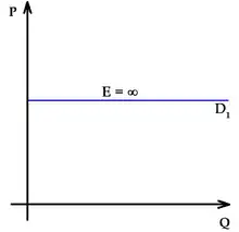 Como muestran los dos diagramas, la demanda perfectamente elástica se representa gráficamente como una línea horizontal y la demanda perfectamente inelástica, como una vertical. Estos son los únicos casos en los que tanto la EPD como la pendiente de la curva de demanda (∆P/∆Q) son constantes, así como los únicos casos en los que la EPD se determina solamente por la pendiente de la curva de demanda (o más precisamente, por la inversa de esa pendiente).[10]