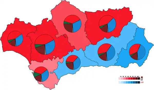 El censo electoral estaba compuesto por 5.387.596 ciudadanos de lo que acudieron a votar 3.625.967 lo que supuso una participación del 67,30% y supusieron la victoria del Partido Socialista Obrero Español de Andalucía que con los 45 escaños obtenidos perdió la mayoría absoluta que disfrutaba en la anterior legislatura al sufrir la pérdida de 17 escaños.