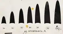 Electroforesis de afinidad es un nombre general para muchos métodos analíticos utilizados en bioquímica y biotecnología. Se puede obtener información tanto cualitativa como cuantitativa mediante electroforesis de afinidad. [1] La electroforesis cruzada, el primer método de electroforesis por afinidad, fue creado por Nakamura et al. Los complejos enzima-sustrato se han detectado mediante electroforesis cruzada. [2] [3] [4] [5] [6] Los métodos incluyen el llamado ensayo de cambio de movilidad electroforética, electroforesis por cambio de carga y electroforesis capilar de afinidad. [1] Los métodos se basan en cambios en el patrón electroforético de las moléculas (principalmente macromoléculas) mediante interacción bioespecífica o formación de complejos. La interacción o unión de una molécula, cargada o descargada, normalmente cambiará las propiedades electroforéticas de una molécula. [7] [1] Las proteínas de membrana pueden identificarse mediante un cambio en la movilidad inducido por un detergente cargado. Los ácidos nucleicos o fragmentos de ácidos nucleicos pueden caracterizarse por su afinidad con otras moléculas. Los métodos se han utilizado para la estimación de constantes de unión, como por ejemplo en electroforesis de afinidad de lectinas o caracterización de moléculas con características específicas como contenido de glucano o unión a ligando. [1] Para enzimas y otras proteínas de unión a ligandos, se puede utilizar electroforesis unidimensional similar a la contraelectroforesis o a la "inmunoelectroforesis en cohete", o la electroforesis de afinidad como una cuantificación alternativa de la proteína. [8] Algunos de los métodos son similares a la cromatografía de afinidad mediante el uso de ligandos inmovilizados.