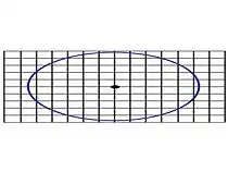 ![]() Una circunferencia en un plano cartesiano no deformado. | ![]() Esta circunferencia se transforma en una elipse mediante una anamorfosis, donde el eje Y se ha contraído y/o el X se ha dilatado. | ![]() Otra modificación del plano contenedor; los ejes no se deforman ortogonalmente, sino que cada punto corresponde a otro según una homología de centro impropio (afinidad). |