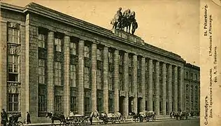 La restauración del edificio empezó en 2001,[5] con el apoyo de Rossvyazojrankultura y la Gobernadora de San Petersburgo, Valentina Matvienko, en un proyecto con un coste estimado en 170 millones de rublos. Además, un grupo de restauradores dirigidos por OOO «StroyTREST» están planeando recrear la escultura de los Dioscuros para su colocación en el tímpano del edificio. El proyecto para sustituir la escultura ha estado en proceso durante varios años, y las cálidas relaciones entre Rusia y Alemania han creado el ambiente político adecuado para la restauración del edificio a su antigua gloria.[6]