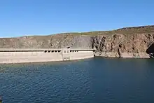 La presa es una bóveda simétrica de doble curvatura, y es la más alta de Argentina con 118,5 m de alto.[4] Se encuentra ubicada en el río Diamante, en la provincia de Mendoza, y su construcción se llevó a cabo entre 1966 y 1974.