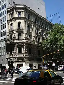 El edificio Pacífico, en Florida y Córdoba, fue proyectado en 1888/1889 por Agrelo y Raúl Levacher,[lower-alpha 1] inicialmente para la sucursal argentina de Le Bon Marché de Francia —por eso fue conocido con ese nombre— aunque nunca se concretó su instalación; con características modernas para esa época: calefacción, instalación eléctrica y ascensores; albergó comercios en su planta baja y en los pisos altos se instalaron la Sociedad Estímulo de Bellas Artes, El Ateneo, La Colmena, la Academia Nacional de Bellas Artes y Escuela de Artes Decorativas e Industriales, el Museo de Bellas Artes y finalmente las oficinas del Ferrocarril Buenos Aires al Pacífico, que le dieron su nombre al edificio. Fue declarado monumento histórico nacional en 1989.[10]