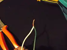 - 2. Se pela un trozo generoso de la punta del otro cable.