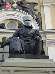 Ucrania: Encapuchados junto a un grupo de adherentes nacionalistas a rostro descubierto derribaron el Monumento a Lenín de Kiev y otros símbolos del comunismo y socialismo en el país durante el Euromaidán en 2015.[18]