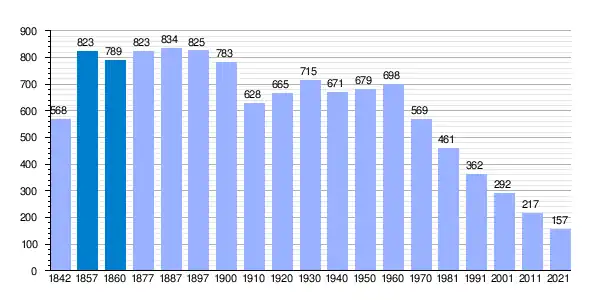 | Gráfica de evolución demográfica de Encinasola de los Comendadores[13] entre 1842 y 2021 |