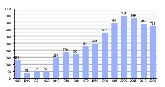 | Gráfica de evolución demográfica de Encinillos entre 1900 y 2020 |