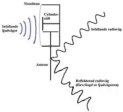 El sistema es en la práctica un circuito resonante LC en el que el condensador (C) es el captador del sonido, como un típico micrófono de condensador. Ese circuito LC está sintonizado a una frecuencia de resonancia concreta y acoplado capacitivamente a una antena de longitud adecuada.