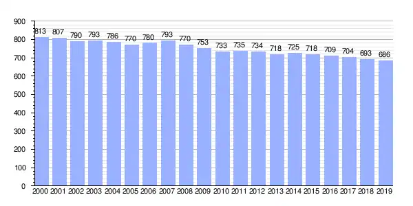 Población de derecho según los censos de población del INE. Población de hecho según los censos de población del INE.Entre el Censo de 1970 y el anterior, este municipio desaparece porque se integra en el municipio 15078 (Santiago).[7] |