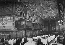 Por encima de los pisos de los dormitorios estaban los pisos del comedor. El décimo piso tenía dos grandes comedores privados y una espaciosa sala de recepción en el frente. Junto a los ascensores había una sala de desayunos, que también podía utilizarse para grandes cenas privadas.[24][33][45] Esta estaba conectada por un puente cubierto con el noveno piso del Engineering Societies' Building. El décimo piso también tenía sus propias salas de servicio[33][45] y una "sala de tapices".[46] El piso 11 tenía un comedor con capacidad para 300 personas.[20][24][47] Al otro lado del patio de luces del este había un balcón para el personal de servicio.[21][33][47] La sala de banquetes se abre al balcón con vista a Bryant Park.[21][27][32] El piso 12 era enteramente para el personal de servicio. Tenía una cocina principal en la parte trasera, junto a una carnicería y un frigorífico.[47] Estos pisos también se han convertido en apartamentos pero conservan gran parte de su antigua decoración de madera. Un apartamento tiene un entrepiso.[40]
