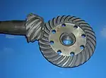 Un engranaje es un tipo de mecanismo que tiene dos o más ruedas dentadas, que se utiliza para transmitir potencia mecánica de un componente a otro.[1][2] Si las dos ruedas son de distinto tamaño, la mayor se denomina corona y la menor piñón.[3] Un engranaje sirve para transmitir movimiento circular mediante el contacto de ruedas dentadas.